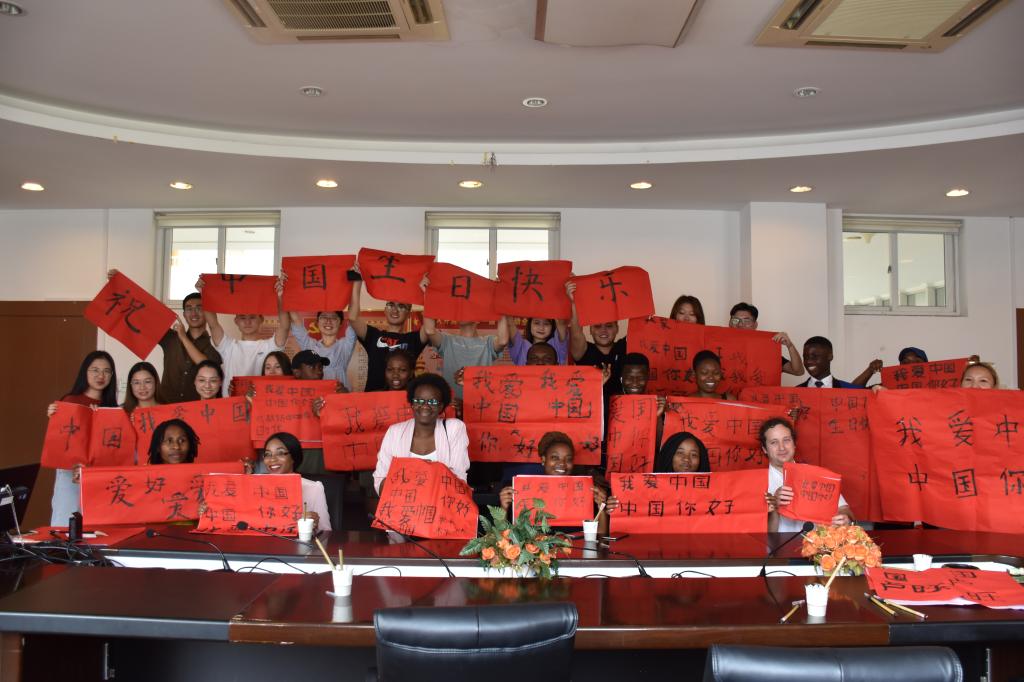 习近平新时代中国特色社会主义思想外文宣讲团开展“献礼70年、书写中国情”外文宣讲活动,与来自法学院的20余名留学生一起庆祝新中国成立70周年。