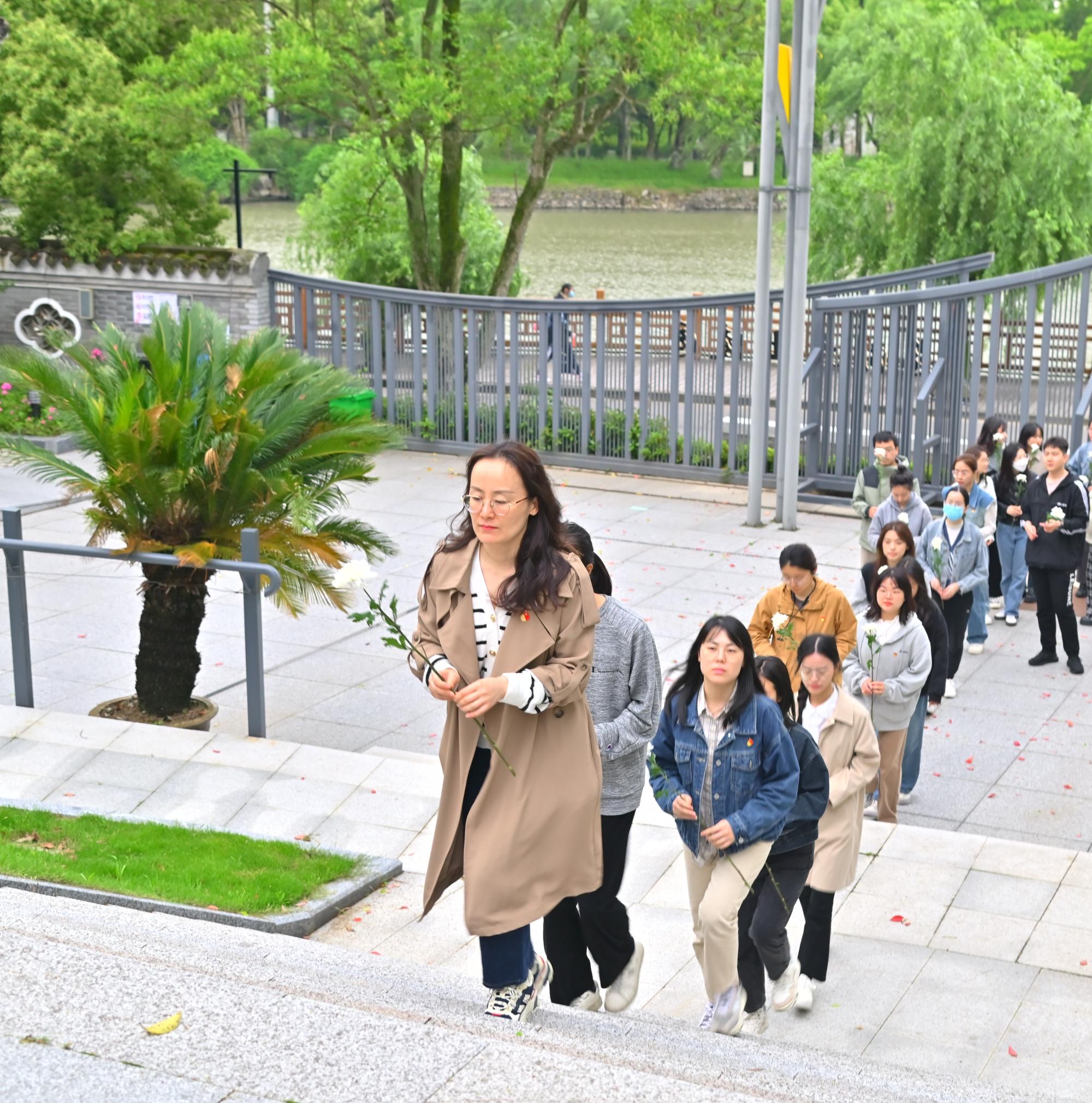 党委赴慈城开展学习贯彻习近平新时代中国特色社会主义思想主题教育研学实践活动,学院党委副书记胡佳带领40余名学生党员、辅导员和分党校预备党员培训班学员走进慈城真理园、深入南联村参观研学,并前往慈湖烈士陵园祭扫献花。