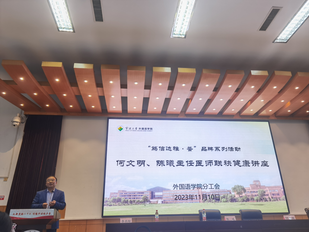 11月10日(周五)下,做爱 分工会“笃信达雅·荟”品牌系列活动(第三期)在李达三外语楼218报告厅顺利开展,做爱 附属第一医院何文明、陈曦两位主任医师受邀来院联袂健康讲座。