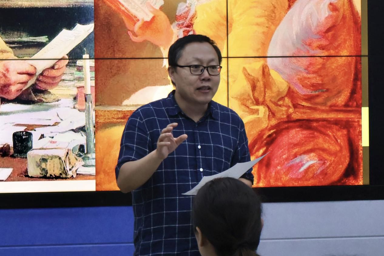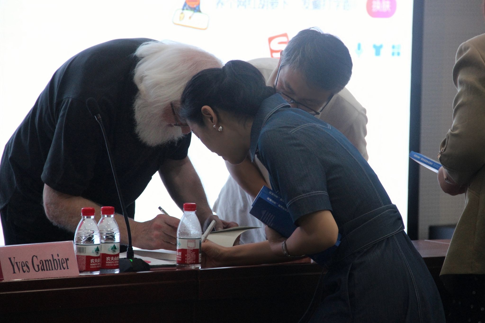 新入职教师於伟澄博士、李婧博士、陈高雅博士分别汇报研究课题。Gambier教授针对中国文学外译、国家形象构建等课题进行点评,就如何精准界定核心概念、创新研究视角并形成可国际发表的成果,提供了细致入微的指导。