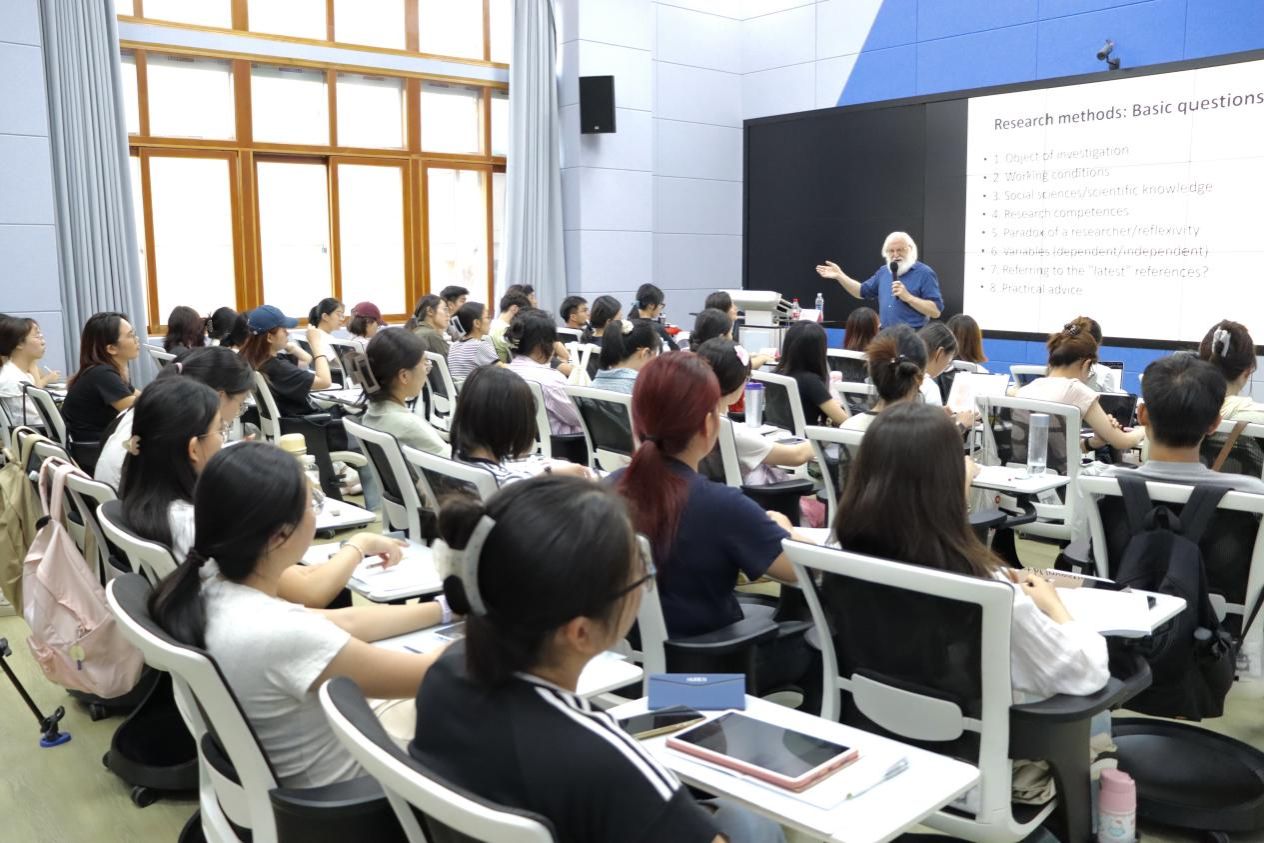 系列讲座于10月13日正式启幕。首场讲座《研究方法:基本问题》(Research Methods: Basic Questions)由贺莺教授主持。Gambier教授深入探讨了如何界定研究的“科学性”与规范学术写作。他结合数十年学术积淀,系统阐释科学性的四大支柱:系统性、逻辑性、集体性与诚实性,并着重强调:坚守学术伦理底线要求学者必须如实报告无法完美诠释的数据。此外,教授层层剖析了核心概念界定、研究现实约束、方法论多样性及研究者自反性等关键问题,提供了从方法论设计到论文撰写的全方位实用指导。