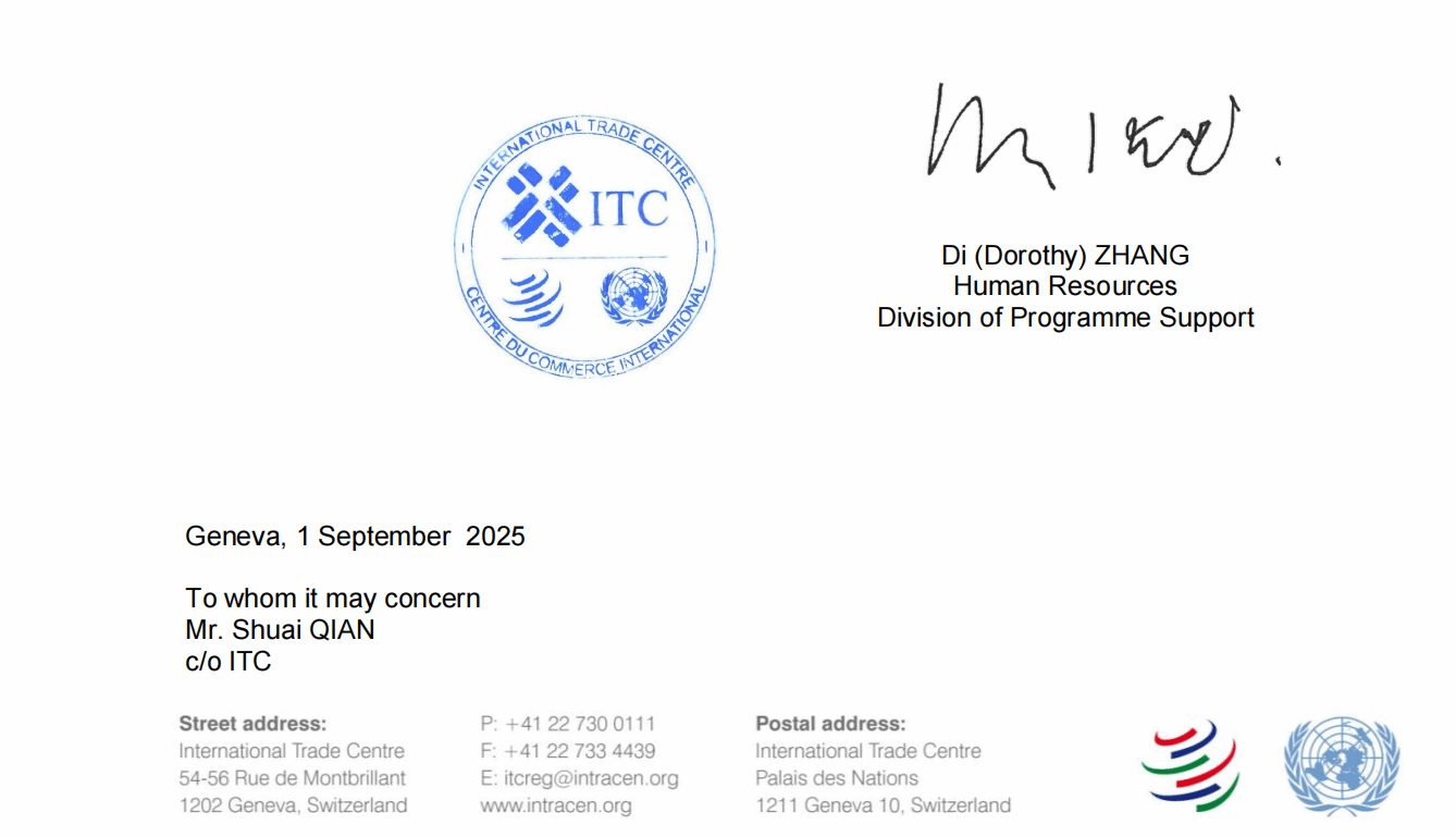 如今,他有幸以数据分析实习生的身份加入联合国日内瓦国际贸易中心,负责数据收集、清洗与可视化工作,真正将语言优势与数据技能结合,参与到全球治理的前沿实践中。