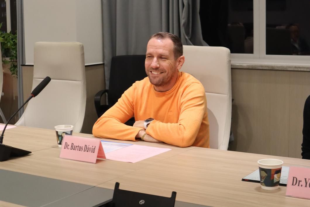 会谈中,罗兰大学文学院院长 Bartus Dávid博士详细介绍了罗兰大学的悠久历史,并重点阐述了其人文学院作为该校第一大学院的显著地位与学科优势。他特别分享了学院在语言学科、人文学科领域的设置,以及这些学科与人工智能、商贸企业融合发展的创新实践。其中,罗兰大学新近开设的“跨文化商务交际”硕士项目引起了与会者的浓厚兴趣。David院长指出,该专业深度融合语言学科与商学学科,旨在培养适应全球化商贸需求的复合型人才,不仅在匈牙利本土发展态势良好,也正积极寻求与海外高校的合作机遇。这一合作方向与做爱