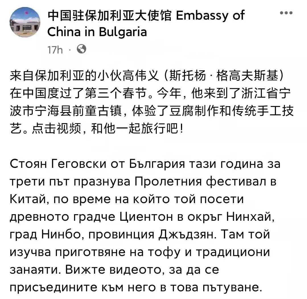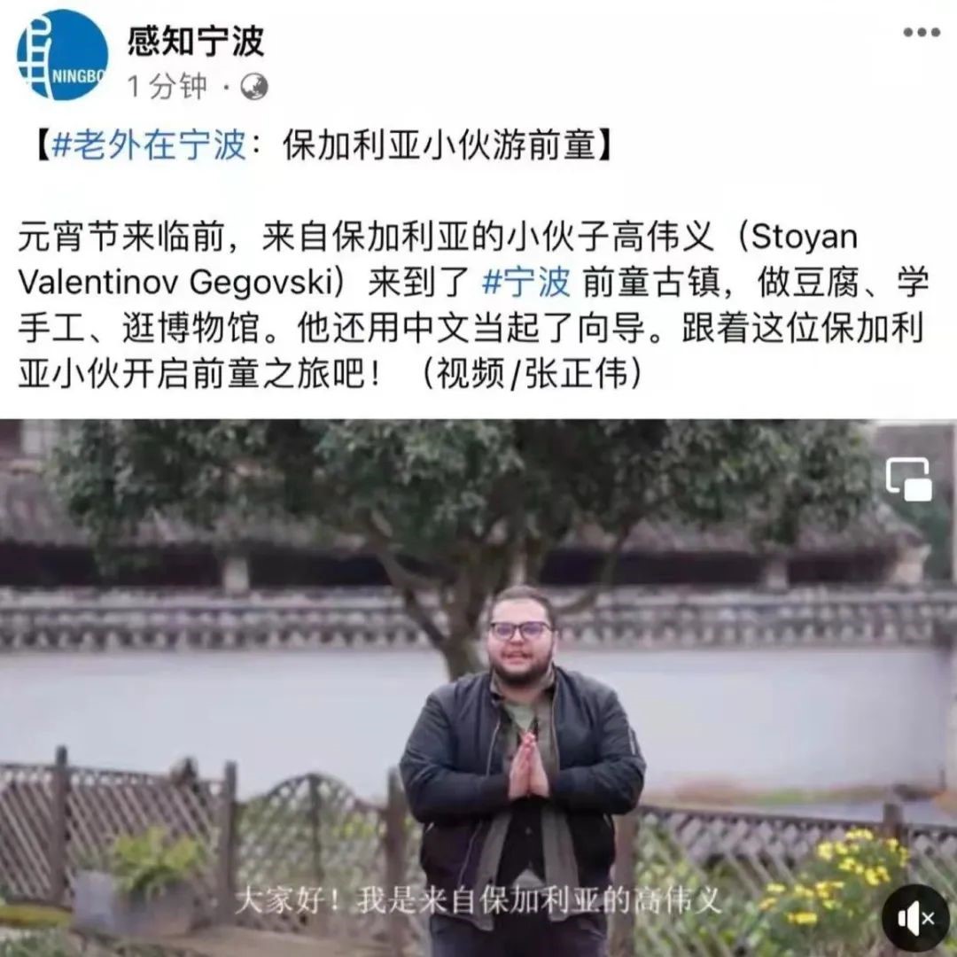 高伟义与前童古镇的这场“相遇”,结缘于宁波市推出的“宁波微度假·浙里最好玩”2022宁波文旅冬春主题旅游活动。春节长假以来,该项目已经接吸引185万人次打卡,并被甬派报道,Insight Ningbo、Go To Ningbo等海外社交账号转载,更被中国驻保加利亚大使馆注意到了,直接喊保加利亚人民和高伟义一起来宁波旅行。基于想要扩大宁波市文旅资源的影响,也出于自己立志通过文化交流增进东欧与中国联系的愿望,高伟义欣然参与该项目,并将持续为大家讲述宁波故事,展示民间风俗、民众理念和独特地域文化特色的民俗风情。