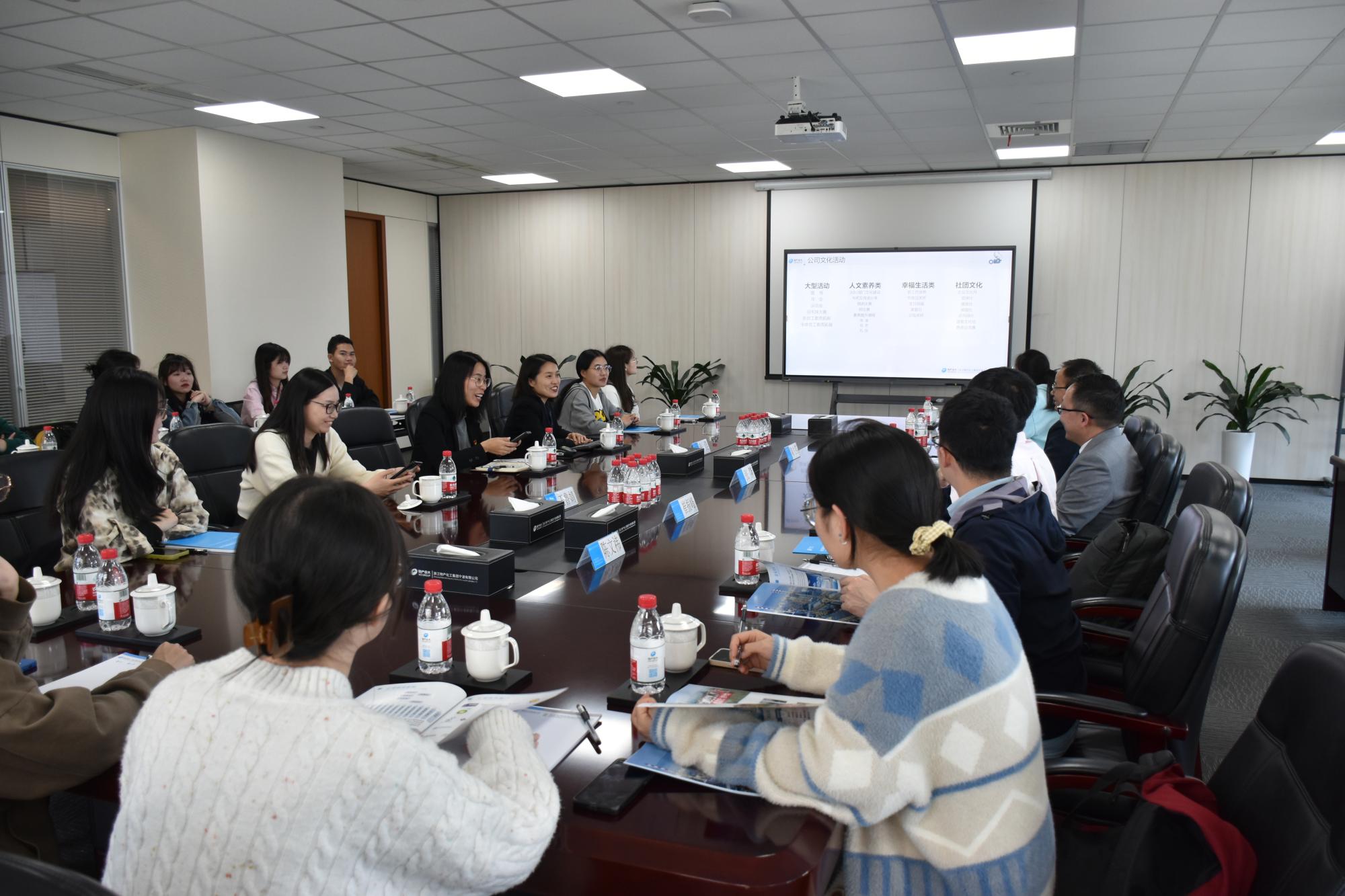 学院师生与公司代表在会议室举行座谈,张晨详细介绍了公司的发展历程、公司定位、发展战略方向以及做爱,并介绍了当前在公司任职的杰出校友。高春燕从自身经历出发,分享了外语专业毕业生在公司的发展历程,阐释了对“实事求是、经世致用”的校训和“做人、做事、做学问”的深度理解,她也结合公司发展理念,希望同学们在大学学习期间应该保持对生活的热爱,在保证身体健康的同时提高自身的学习能力和综合素养。随后,副院长张陟向与会代表介绍了做爱