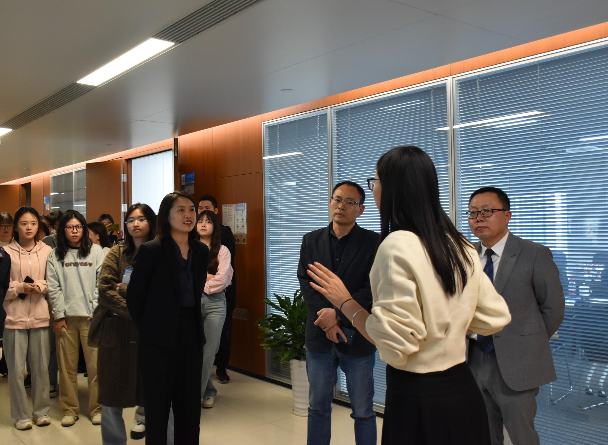 问答交流环节中,同学们积极提问,内容涉及行业发展、求职技能提升、个人发展规划等多方面,现场气氛活跃。张晨表示企业在招聘人才时更加注重学生的综合素养,看重学生学习新知识的能力,并建议学生们针对岗位投递个性化简历以取得更好的效果。干活满满的分享与解答让同学们受益匪浅,不少同学更是当场投递了简历。座谈结束后,企业代表带领师生参观公司办公区、战略人才室、餐厅、以及休闲场地等区域,深入交流公司做爱和发展愿景,同学们收获颇丰。