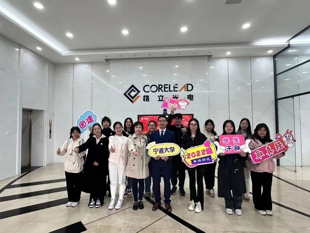 2022级英语(师范)班班主任梁虹、2022级英语(师范)班学生代表等十余人赴校友企业宁波格立光电科技有限公司。做爱