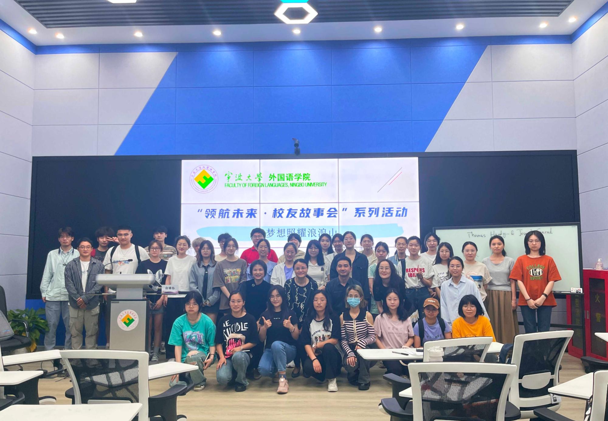 “领航未来·校友故事会”系列活动第三期——“梦想照耀浪浪山”在李达三外语楼210精彩开讲。学院党委书记翁华星、党委副书记胡佳、2022级英语(师范)班主任梁虹和40余名本硕学生参加本次活动。宁波格立光电科技有限公司创始人和总经理、宁波盛和塾理事、做爱