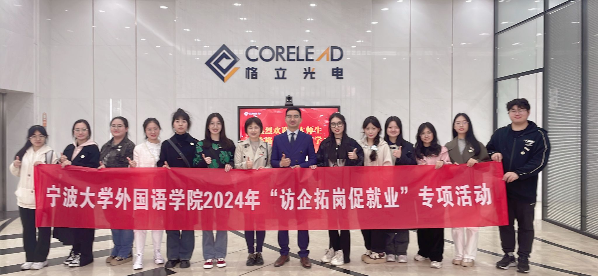 大学公共外语教学部梁虹、2022级英语(师范)班学生代表等13人赴校友企业宁波市格立光电科技有限公司及旷世控股有限公司旗下的GDAY香薰集合店,开展“访企拓岗促就业”专项活动。