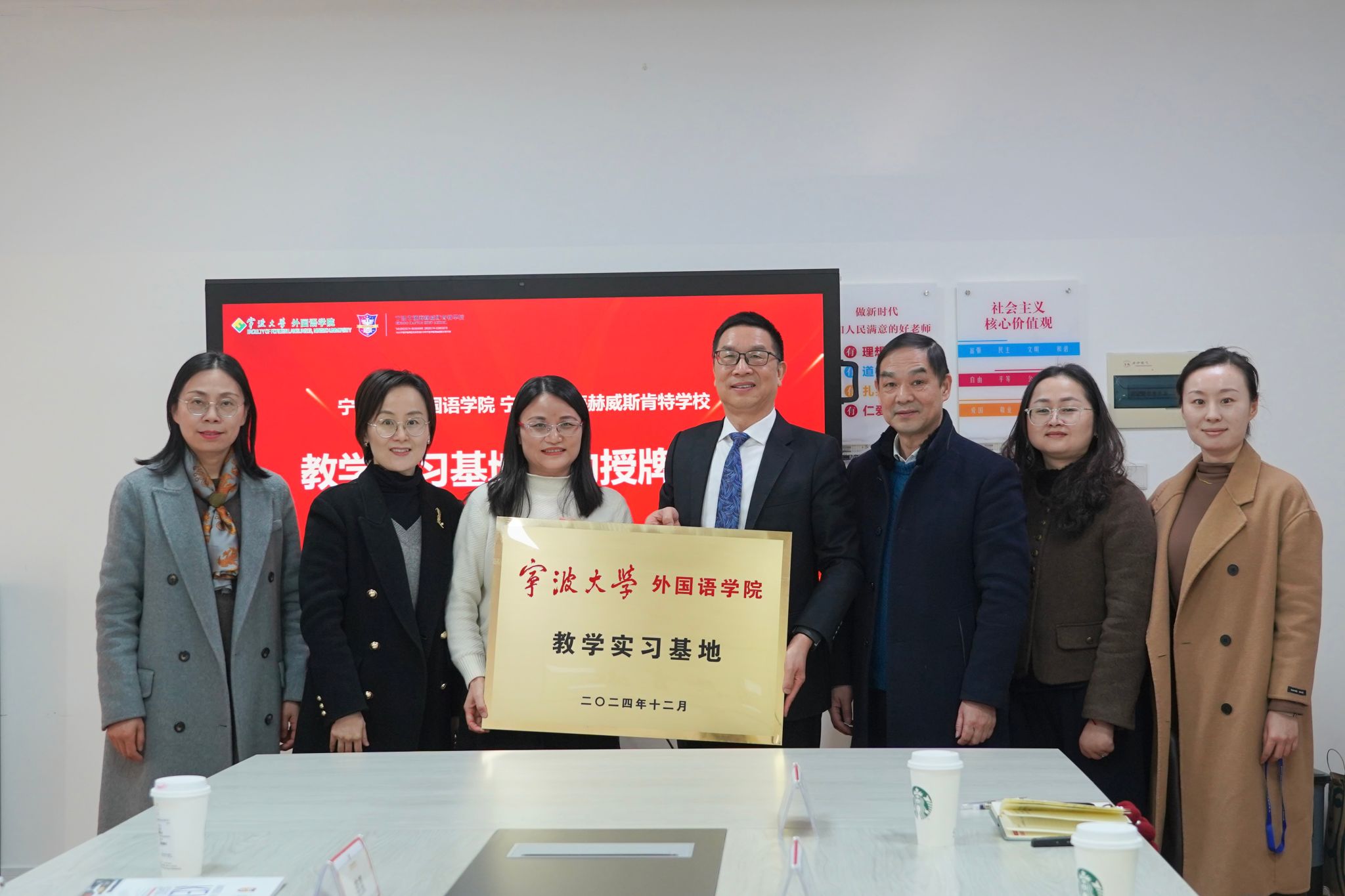 党委书记翁华星、党委副书记胡佳、英语系副主任李奕、学生代表等二十余人赴宁波市镇海赫威斯肯特学校开展“访企拓岗促就业”专项活动。宁波市镇海赫威斯肯特学校校长徐未华、副校长舒建东、校办主任杨晶、校办副主任陈瑶亲切接待。双方签署战略合作协议,并进行教学实习基地授牌仪式。