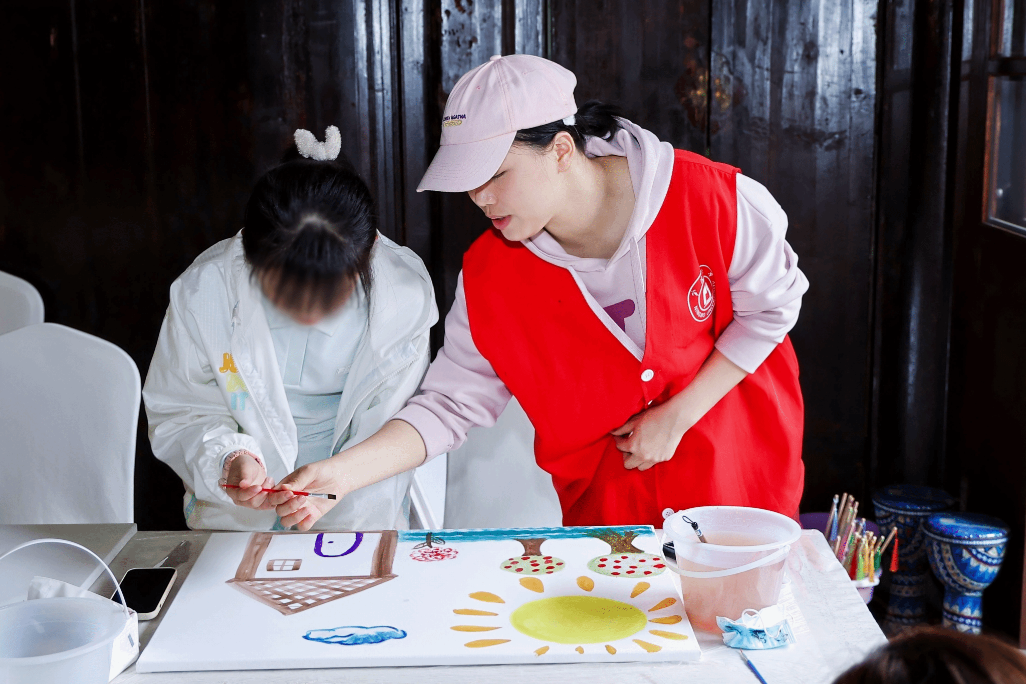 林艳副教授为孩子们精心设计了别开生面的兔宝宝造型花篮插花体验活动。在志愿者的陪护下,孩子们还参与了漆扇制作、星宝画展等丰富多彩的活动。每一件作品都凝聚着孩子们的创意与梦想,也展现了他们对美好世界的向往与追求。志愿者们还为孩子们的作品拍摄照片,生成电子明信片,为他们留下了珍贵的记忆。