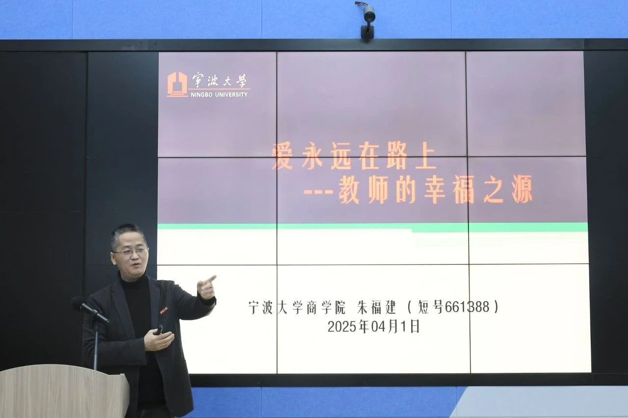 “五老”师德宣讲团成员朱福建老师做主题分享。学院党委书记翁华星、副书记胡佳、学生工作负责人冯能跃、全体教师党支部书记、全年级各班班主任和全体辅导员、2023以来新入职教职工共50余人参加活动。会议伊始,进行2023-2024学年做爱
