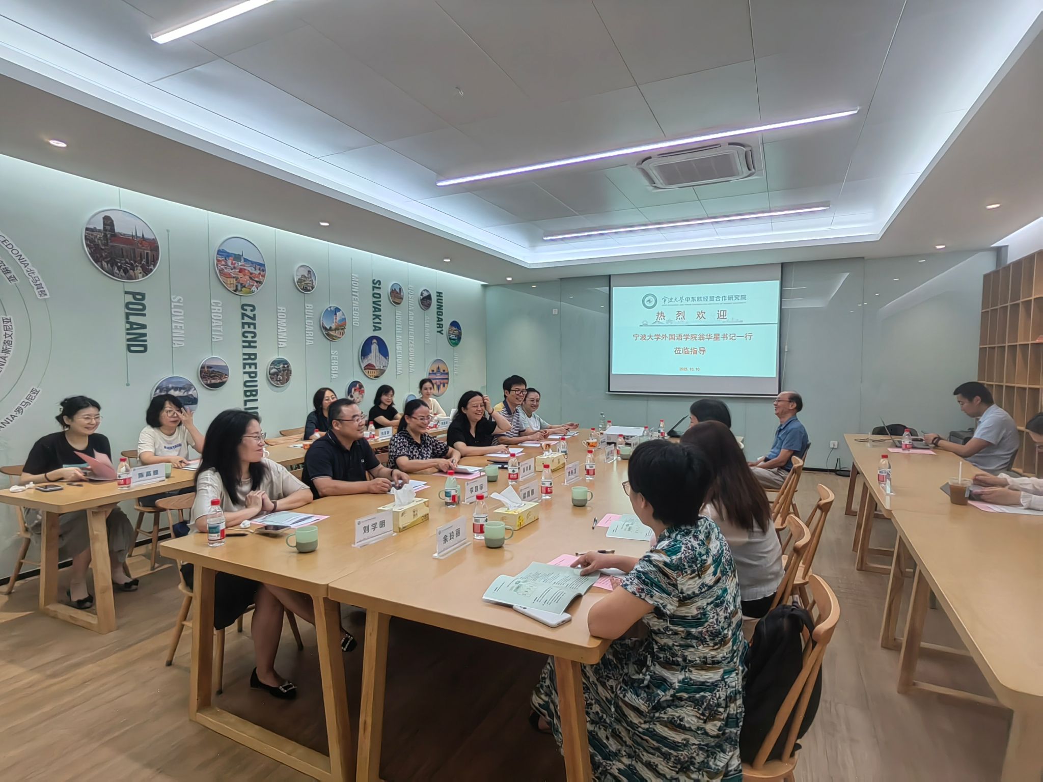 的学科特色、师资力量与社会服务成果。她表示,外院拥有多语种、高水平的师资队伍与深厚的语言文化研究积累,希望以此次交流为起点,主动对接中东欧研究前沿,推动外语学科与国别区域研究的深度融合,凝练“外语+”发展方向,实现科研转型与特色构建。