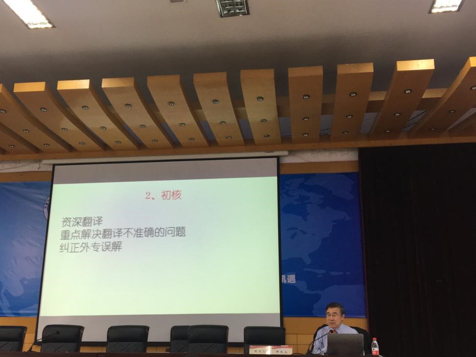 副院长程乐教授作了题为“‘一带一路’中的话语建构与语言服务”的主旨报告。作为资深的法律翻译专家,他分享了自己如何在宏阔的文化背景下对接国家的需求,并从社会符号学角度对目前的“一带一路”建设进行解读。他认为在多元文化战略建构中应秉持“平等包容、厚德载物”的原则,尤其需要注重多种文化符号(语言、文学、影视等)的传播。最后程教授提出了培养法律翻译人才的几点思考和建议,尝试为我国法律翻译人才培养的实践提供理论指导。