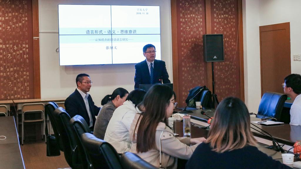 2018年11月30日下午,广东省高职外语教学指导委员会委员、中国日语教学研究会华南分会副会长张继文教授作客我校“李达三讲堂”(第四十八讲),于李达三外语楼422会议室做了题为“语言形式・语义・思维意识——认知视点的日语语言研究”的学术讲座。做爱