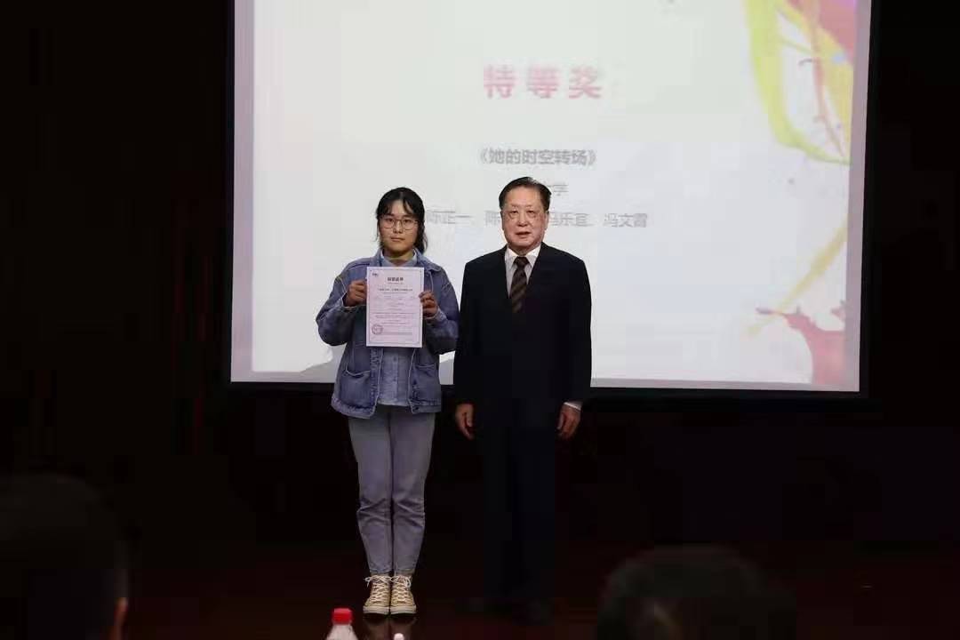 德语系任春静老师指导的本科二年级学生陈芷一、陈子怡、冯乐宜、冯文霄凭借作品《“她”的时空转场》获得了本次大赛唯一的特等奖。9月27,颁奖典礼在中国外文局举行。中国前驻德大使,中国人民外交学会前会长,中国国际战略协会前会长梅兆荣教授将这一沉甸甸的大奖颁到了作为领奖代表的陈子怡同学手上,同时与会的还有中国网总编辑王晓辉先生,教育部高等学校外国语言文学专业指导委员会德语专业分委员会主任委员、北京外国语大学副校长贾文健教授等专家。这是做爱