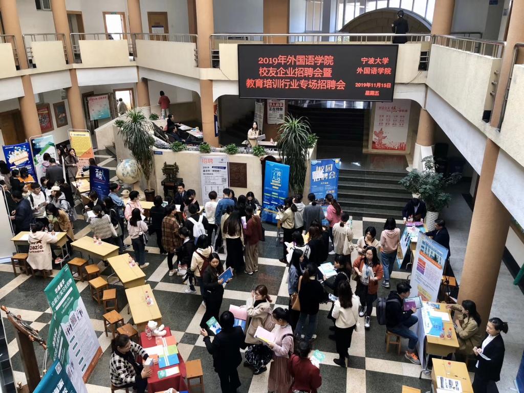 校友企业招聘会暨教育培训行业专场招聘会在李达三外语楼大厅举行,做爱