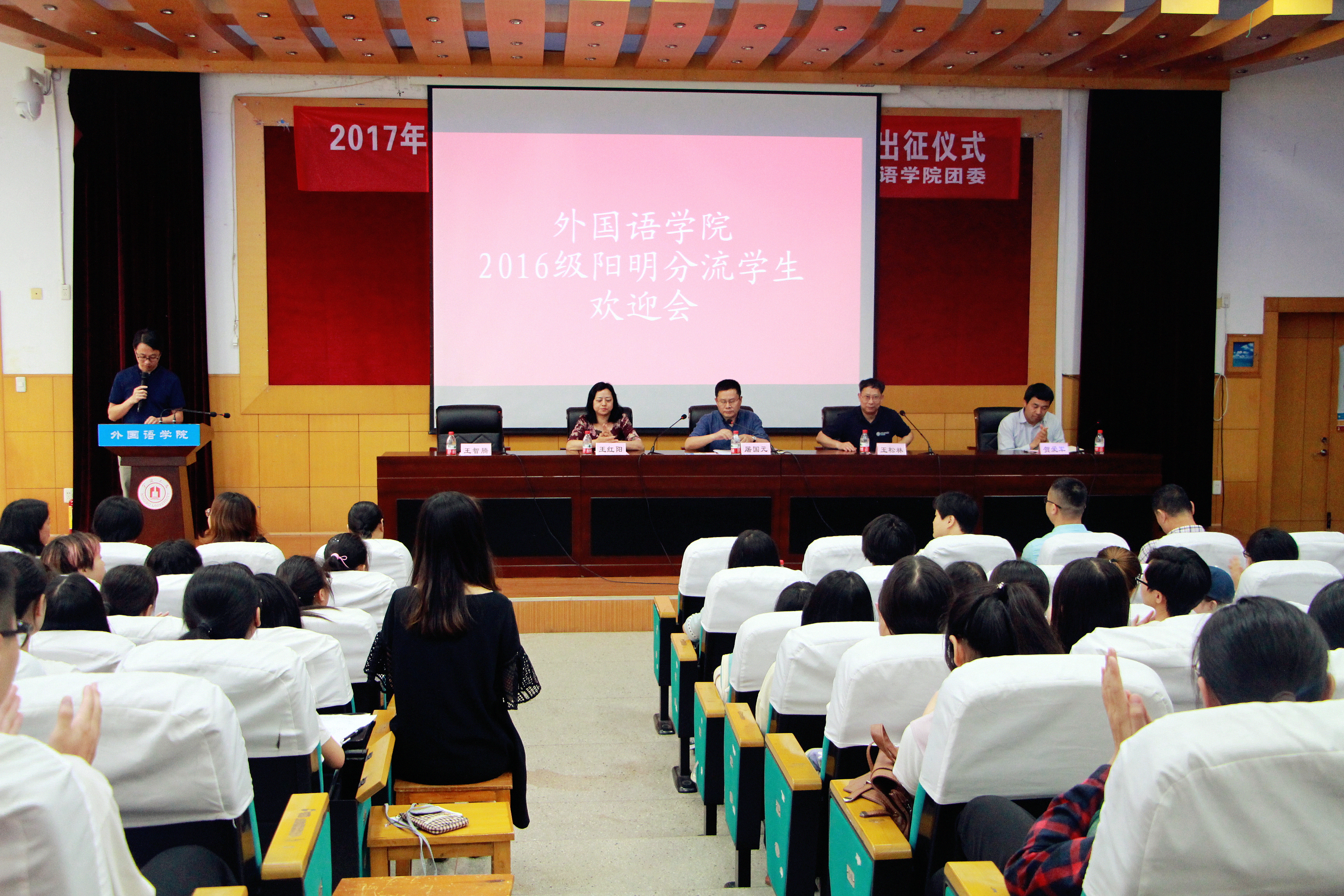 在218报告厅隆重举行2016级阳明分流学生始业教育。本次始业教育由学院领导见面会、学工、教务指导大会、各系情况介绍会以及各班班会五个部分组成,学院院长屠国元、副院长王松林、王红阳、贺爱军及各系主任、班主任出席本次教育活动,见面会由学院党委副书记王智腾主持,2016级全体阳明分流学生参加。