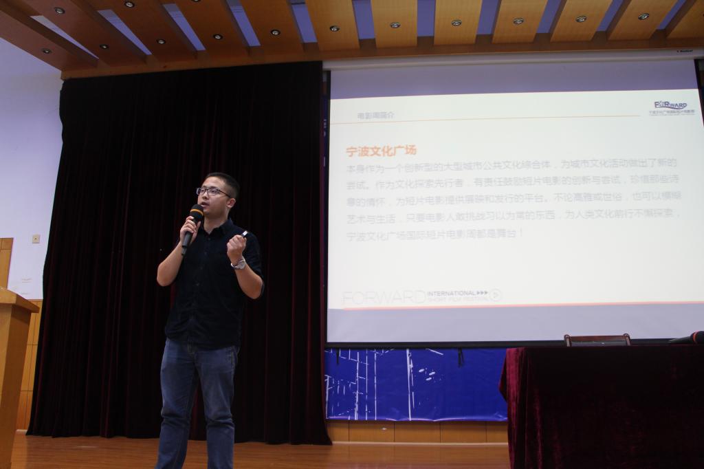 近日,2015宁波文化广场国际短片电影周校园行第一站在做爱 外语学院拉开了帷幕。此次宣讲会在李达三外语楼218报告厅举行,宣讲会的主要内容分为短片电影周介绍、特选影片展映以及现场互动三个环节。
