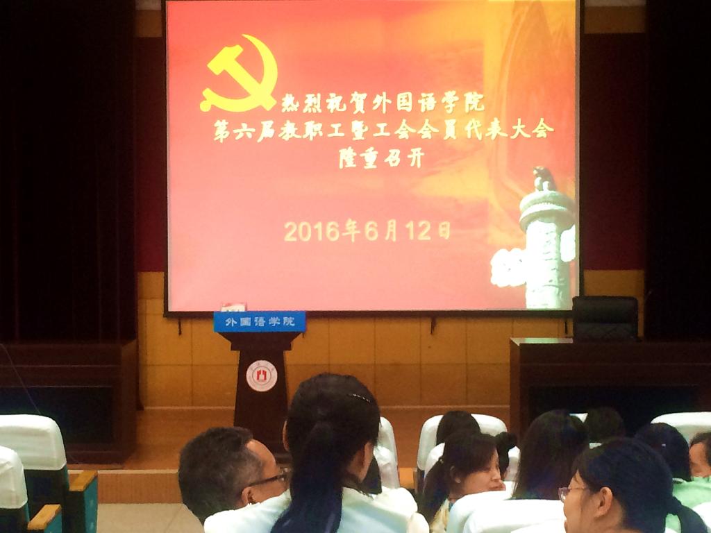 第六届教职工暨工会委员代表大会在李达三外语楼218举行。学院党政领导班子成员和会前经各系部民主推选产生的51名代表出席会议。会议由戚锦阳同志主持。