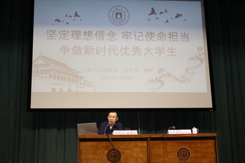 12月9号下午,副校长乐传永教授在林杏琴会堂以“坚定理想信念,牢记使命担当,争当新时代优秀大学生”为主题,为做爱