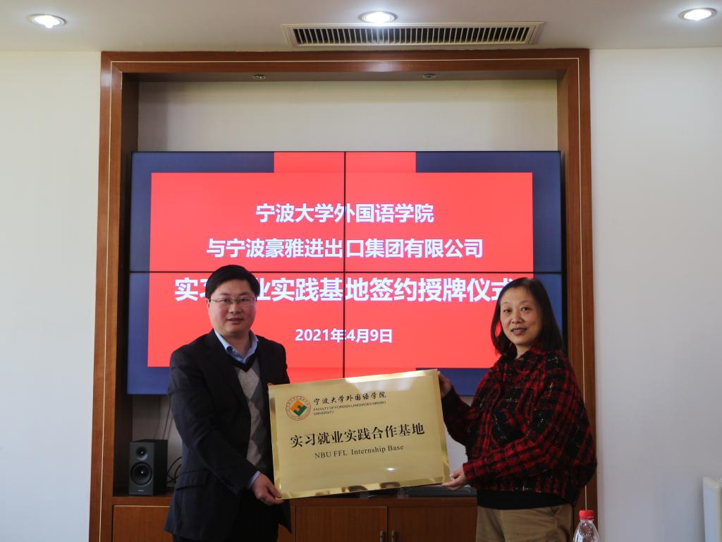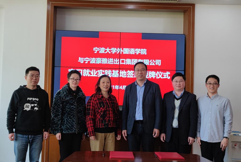 、宁波豪雅进出口集团有限公司在李达三外语楼签署合作协议并授牌,共建实习就业实践合作基地。宁波豪雅进出口集团有限公司集团常务副总蔡井泉、人资中心总经理陈林、人力资源部经理孙云旗,做爱