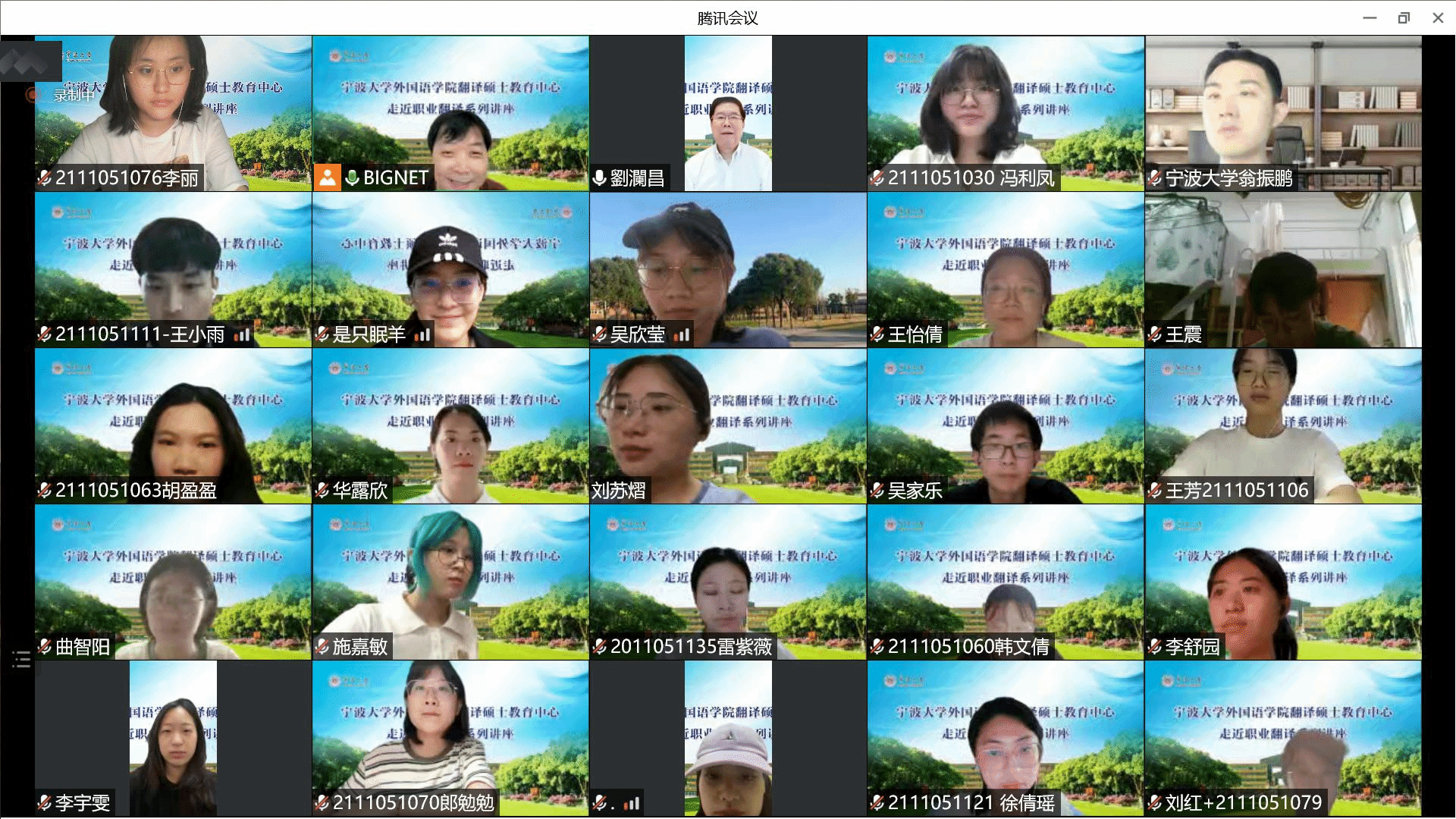,主讲“走近职业翻译”系列讲座第四讲,从公共事务及智库专家视角分享后疫情时代的中美关系以及外语(翻译)人员的角色与职业发展。学院翻译硕士研究生及高年级本科生近150人在云端参加了此次讲座。