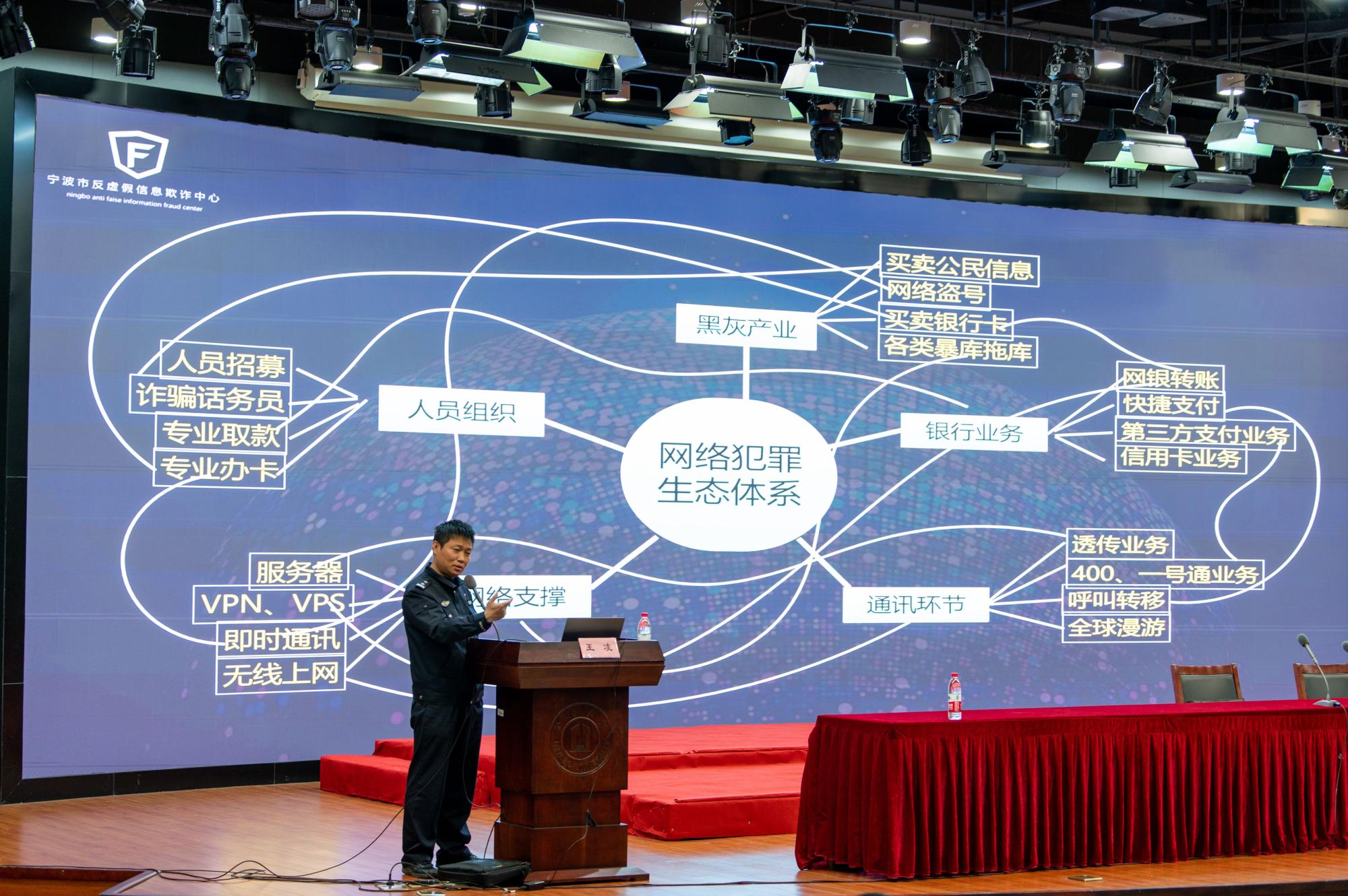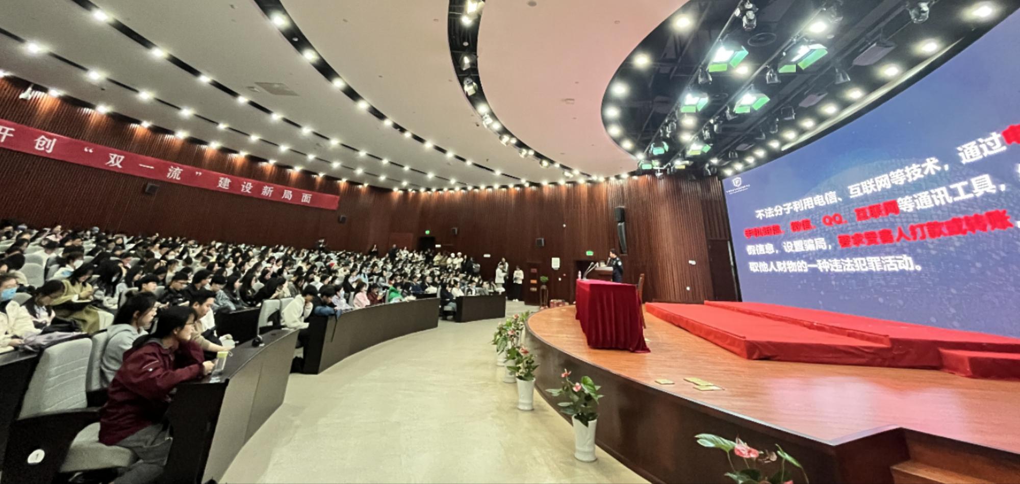 邀请宁波市反虚假信息欺诈中心金牌宣讲员、宁波市公安局江北分局文苑派出所王凌警官,在真诚图书馆报告厅为学院在校学生带来了防范电信网络诈骗的专题报告。学院党委副书记胡佳、辅导员与500余名学生参加了活动。