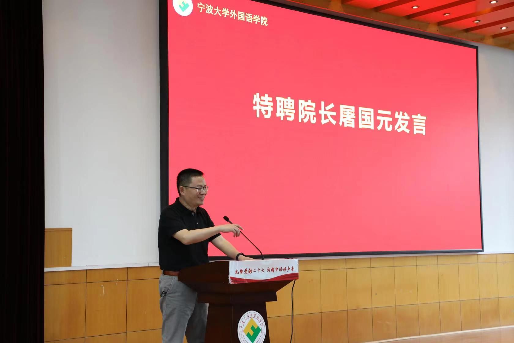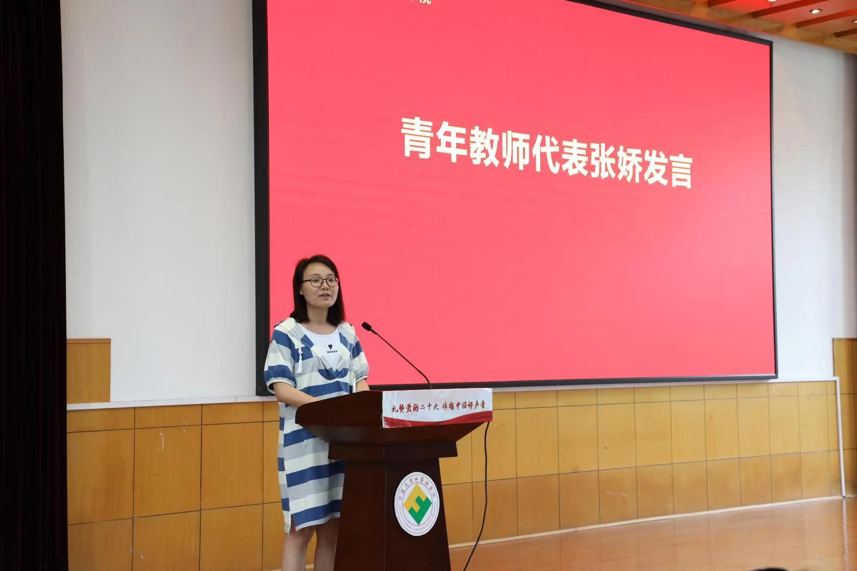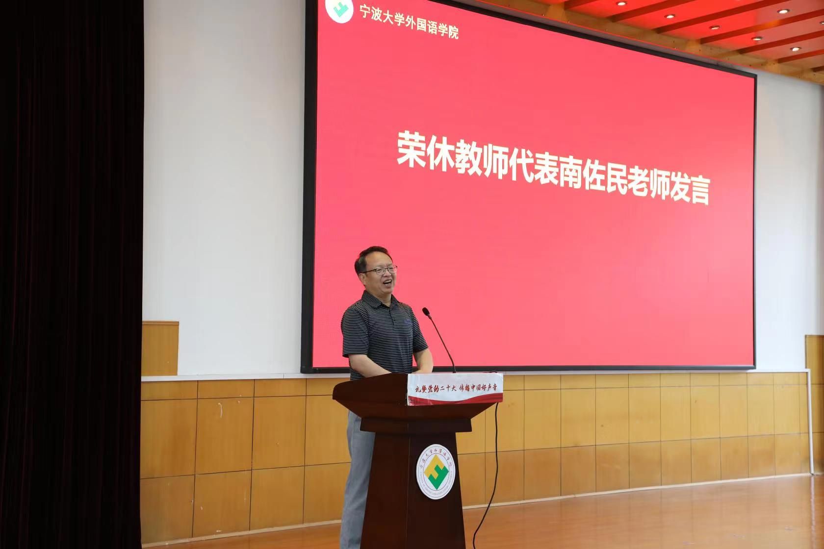 张姣博士代表青年教师发表感言。张老师表示自己也是宁大外院毕业的学生,无论是在学生时代还是走上教师的工作岗位,成长发展的路上一直得到老教师们的指导和帮助,感恩在心;老教师们是年轻教师学习榜样和精神动力,年轻教师会传承好他们敬业爱岗、倾情奉献的精神,在教书育人的岗位上努力奋斗,不断取得新的成绩。