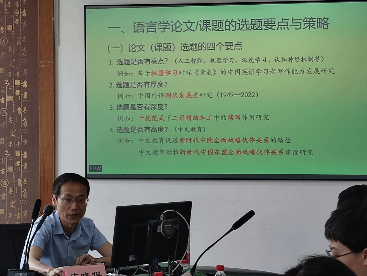 副院长、外国语言研究所所长、认知神经语言学实验室主任韦晓保教授在422会议室以“语言学论文(课题)之选题策略、设计与方法”为题,为做爱