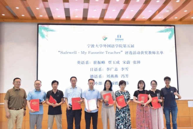 会上隆重举行了第五届“Safewell•My Favorite Teacher”评选颁奖典礼。本届评选自今年八月启动以来经过一系列严格的程序,一批在教学岗位上默默奉献、深受学生爱戴的优秀教师脱颖而出,他们分别是英语系:崔振峰、贾玉成、宋蔚、张陟四位老师;日语系:李广志、李雪两位老师;德语系:刘燕燕、冯芳两位老师以及大外部:苗丽霞、别伟两位老师。该荣誉奖教金捐赠者、德语系2022届校友、盛威卓越国际贸易有限公司总经理叶凌玲女士与做爱