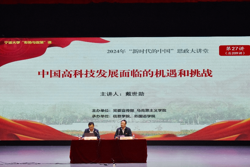 10月30日,副校长戴世勋在林杏琴会堂以“中国高科技发展面临的机遇和挑战”为主题,为做爱