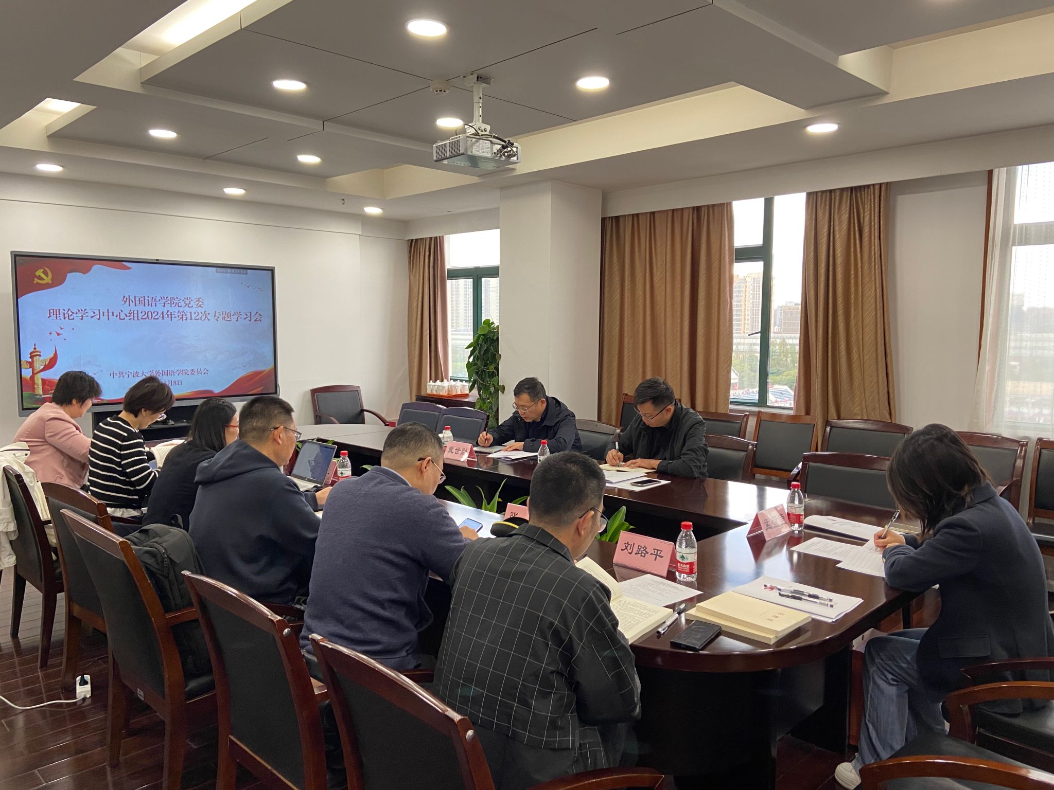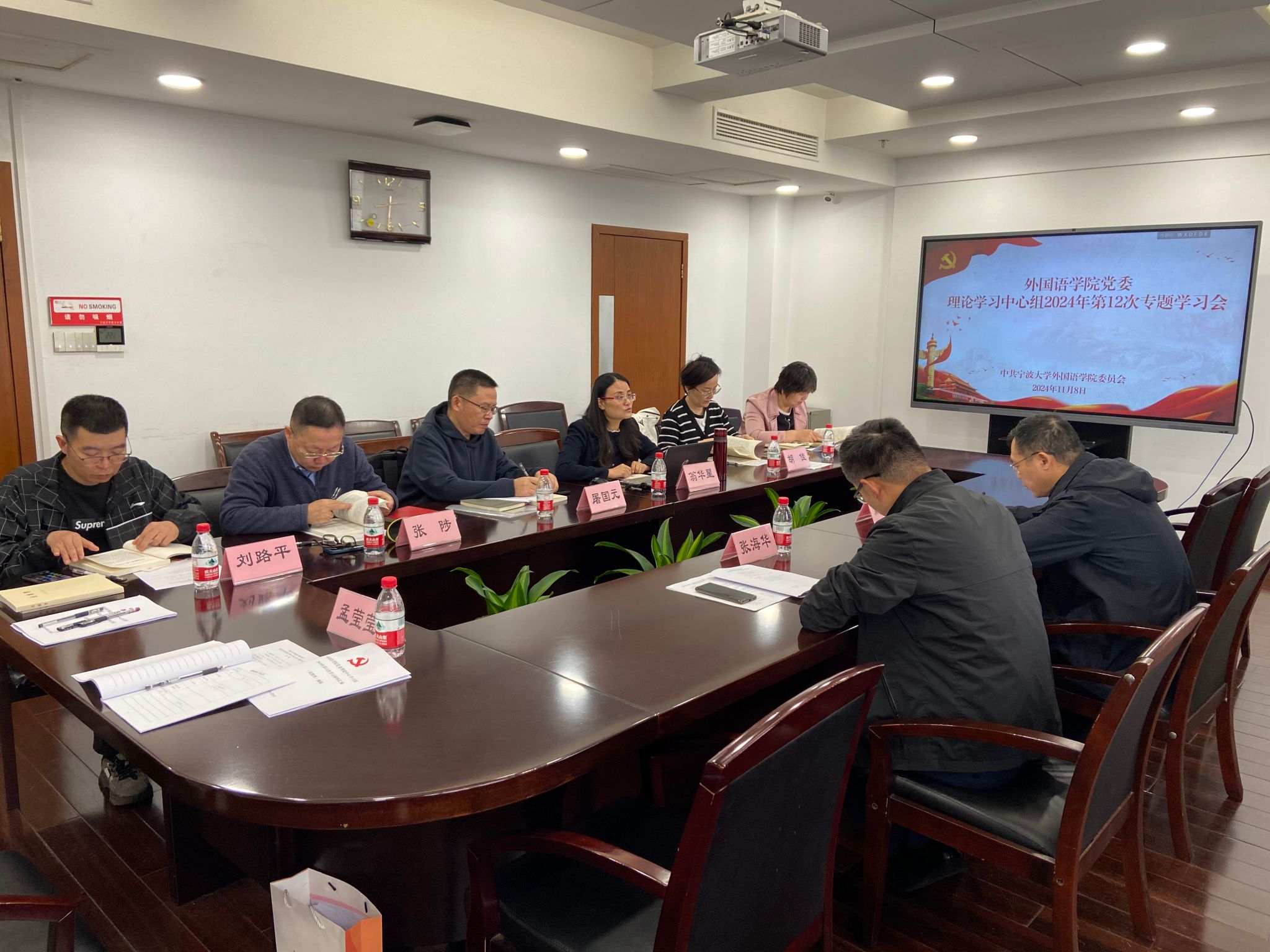 党委负责人领学习近平同志《论教育》中《积极培育和践行社会主义核心价值观》《教师要成为塑造学生品格品行品味的大先生》《构建一流大学体系,全面提高人才培养能力》以及《扎实推动教育强国建设》等与高等教育高度契合的重要讲话内容。中心组两位成员分别围绕“社会主义核心价值观与外语人才培养以及中华思想文化对外传播的重要关联”和“高校教师队伍建设”两个主题做重点发言,中心组其他成员交流学习体会。