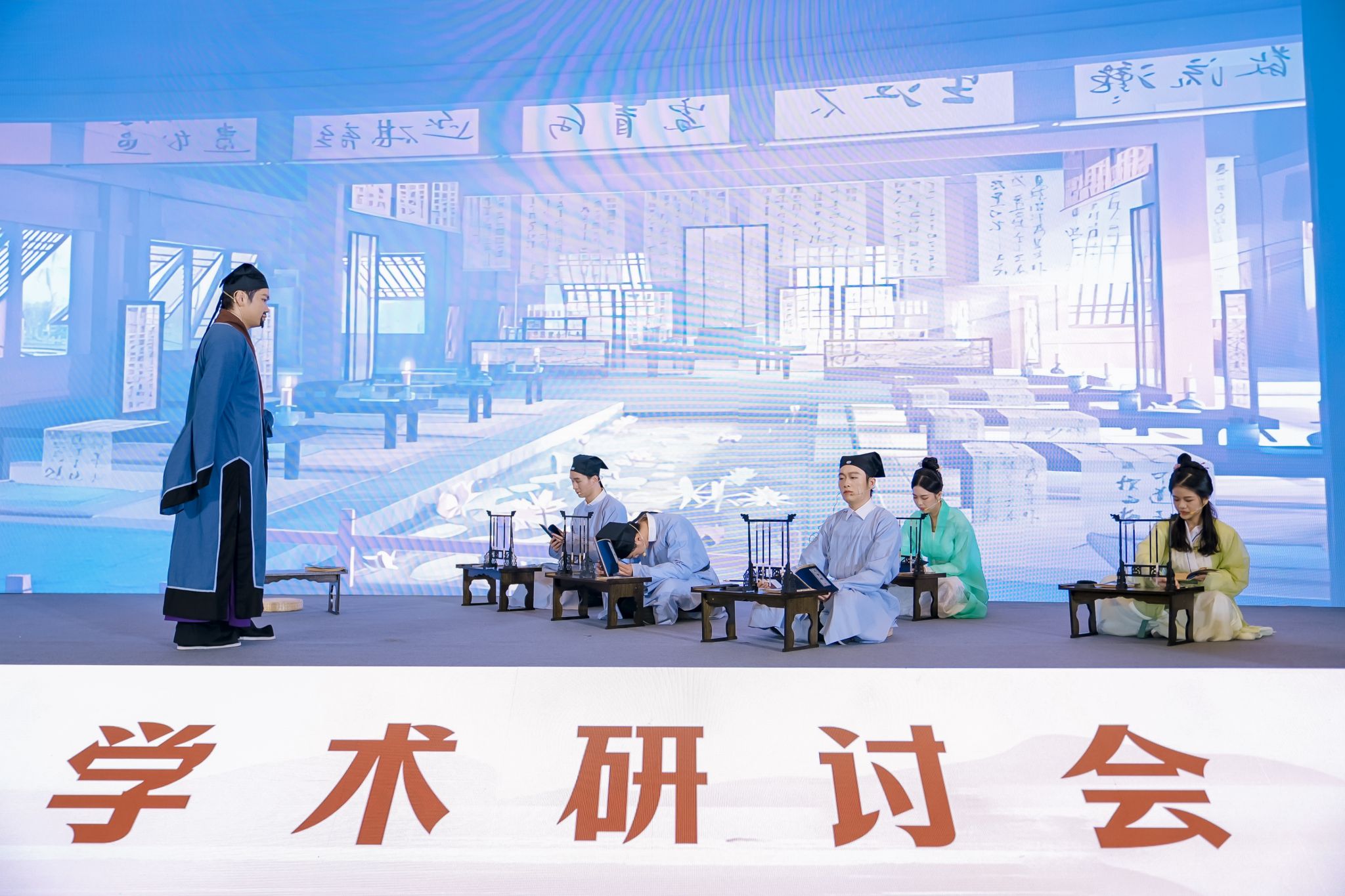 浙东蒙学海外传播团队和外文宣讲团的中外大学生在会议开场生动演绎《三字经》情景剧:古韵今风之“我”在《三字经》里学知识,古今对话、中外结合的新颖形式以及精彩幽默地表演赢得了到场专家学者的一致好评。