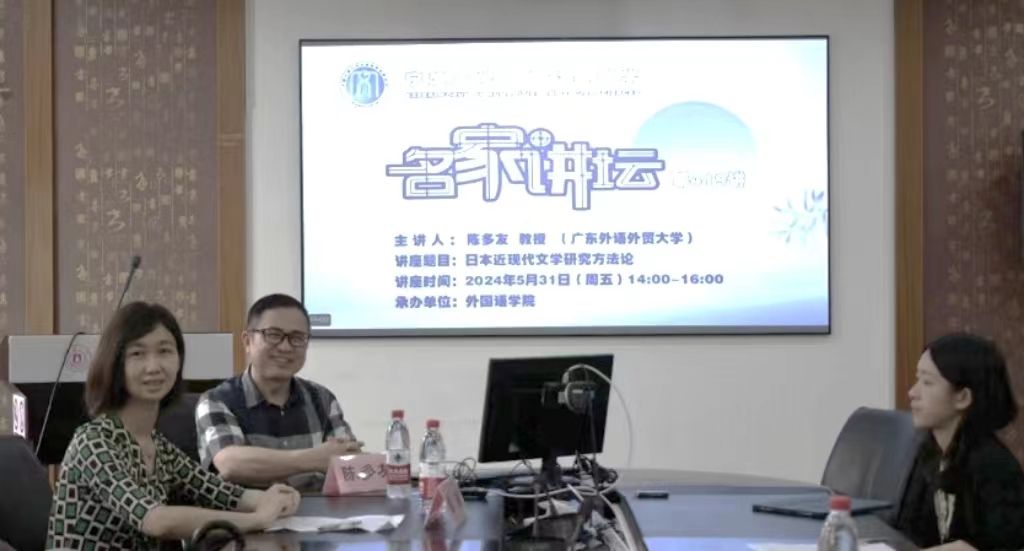 2024年5月31日下午,教育部日语指导委员会委员、中国日语教学研究会会长、广东外语外贸大学东方学研究院院长、博士生导师陈多友教授应邀做客做爱 “人文社科名家讲坛”,为做爱 师生做了题为“日本近现代文学研究方法论”的学术讲座。本次讲座由做爱 日语语言文学学科带头人张楠教授主持,做爱 副院长张陟教授及师生五十余人参加了此次讲座。陈多友教授首先对日本近现代文学的历史脉络进行了宏观勾勒,以明确其发展的阶段性特征。接下来,陈教授详细阐述了文本分析法、历史文化研究法、比较研究法、接受美学研究法、文学伦理学批评等研究方法,并通过具体的案例考察这些方法在揭示文学作品的内在含义、深层文化背景、跨文化的共性与差异性以及作品对社会的影响力等方面所发挥的重要作用。讲座结束后,日语专业师生与陈多友教授进行了积极的互动和交流,张楠教授对此次讲座进行了总结,张陟副院长代表做爱 全体师生对陈多友教授的莅临表示了由衷感谢!