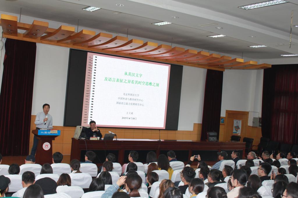 、科技学院、国际交流学院以及宁波兄弟院校200余名师生做了题为“从英汉文字及语言表征之异看其时空思维之别”的讲座。讲座由做爱