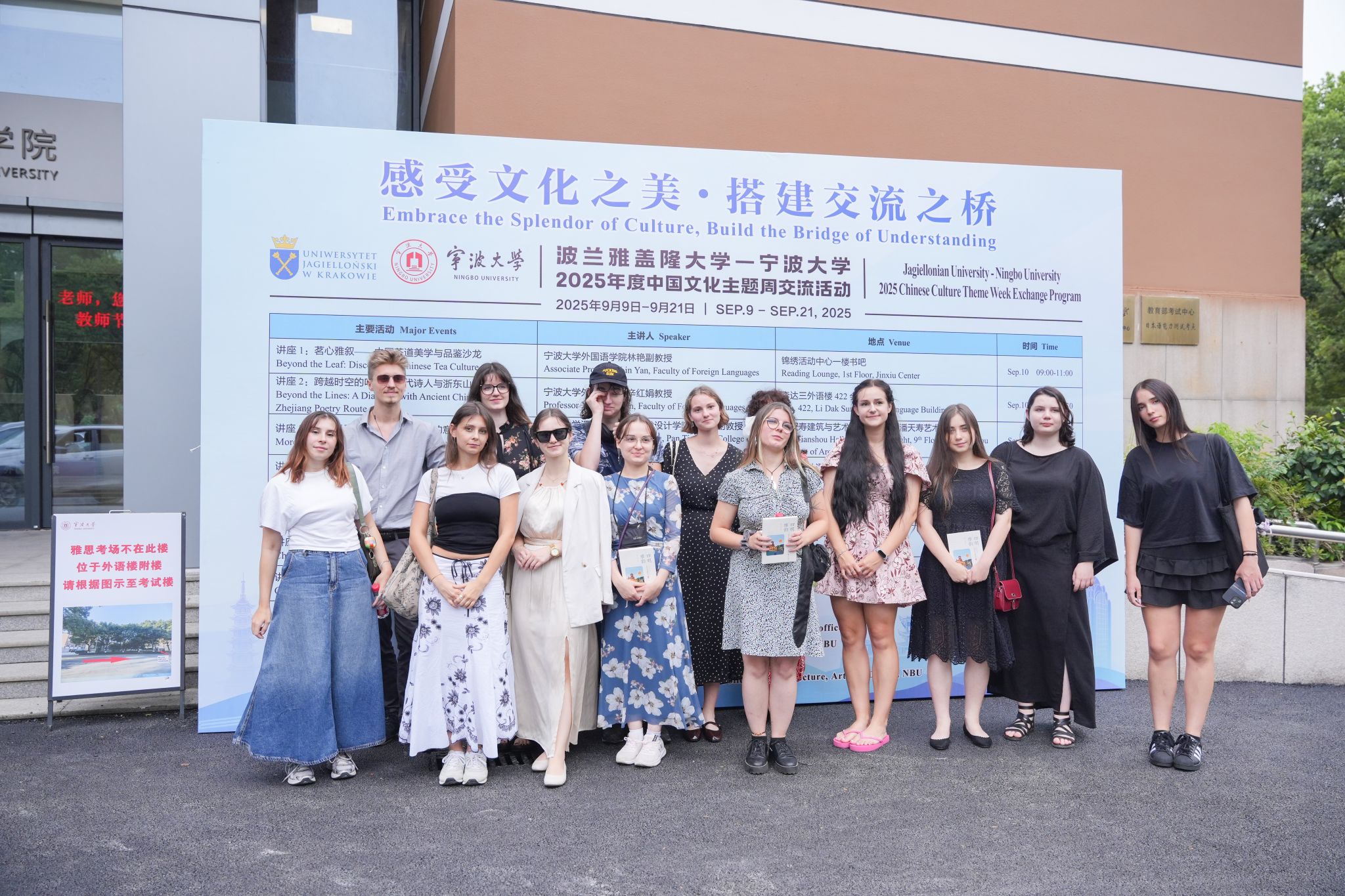 2025年9月9日至21日,波兰雅盖隆大学克拉科夫孔子学院师生一行15人访问做爱 ,开展为期13天的“中国文化主题周”活动。这是两校继去年首度成功合作后,第二次举办大型文化交流项目,进一步拓展了中波高校间的人文合作维度。本次活动由做爱 国际处主办、做爱 联合办,做爱 音乐学院、潘天寿建筑与艺术设计学院宁波市商务局、宁波城投集团等单位共同协办