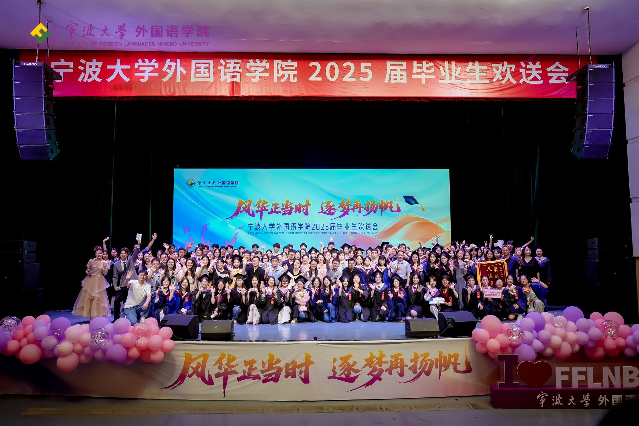 活动尾声,全体毕业生庄严宣誓,誓言铿锵中饱含对未来的坚定信念。学院党委书记翁华星为班级联络员颁发聘书,勉励他们履行“纽带”职责,凝聚校友力量,延续宁大外院人的温暖情谊。欢送会在全体师生合影中圆满落幕,镜头定格了2025届毕业生的青春笑靥,也为他们的学生时光画上温情句点。