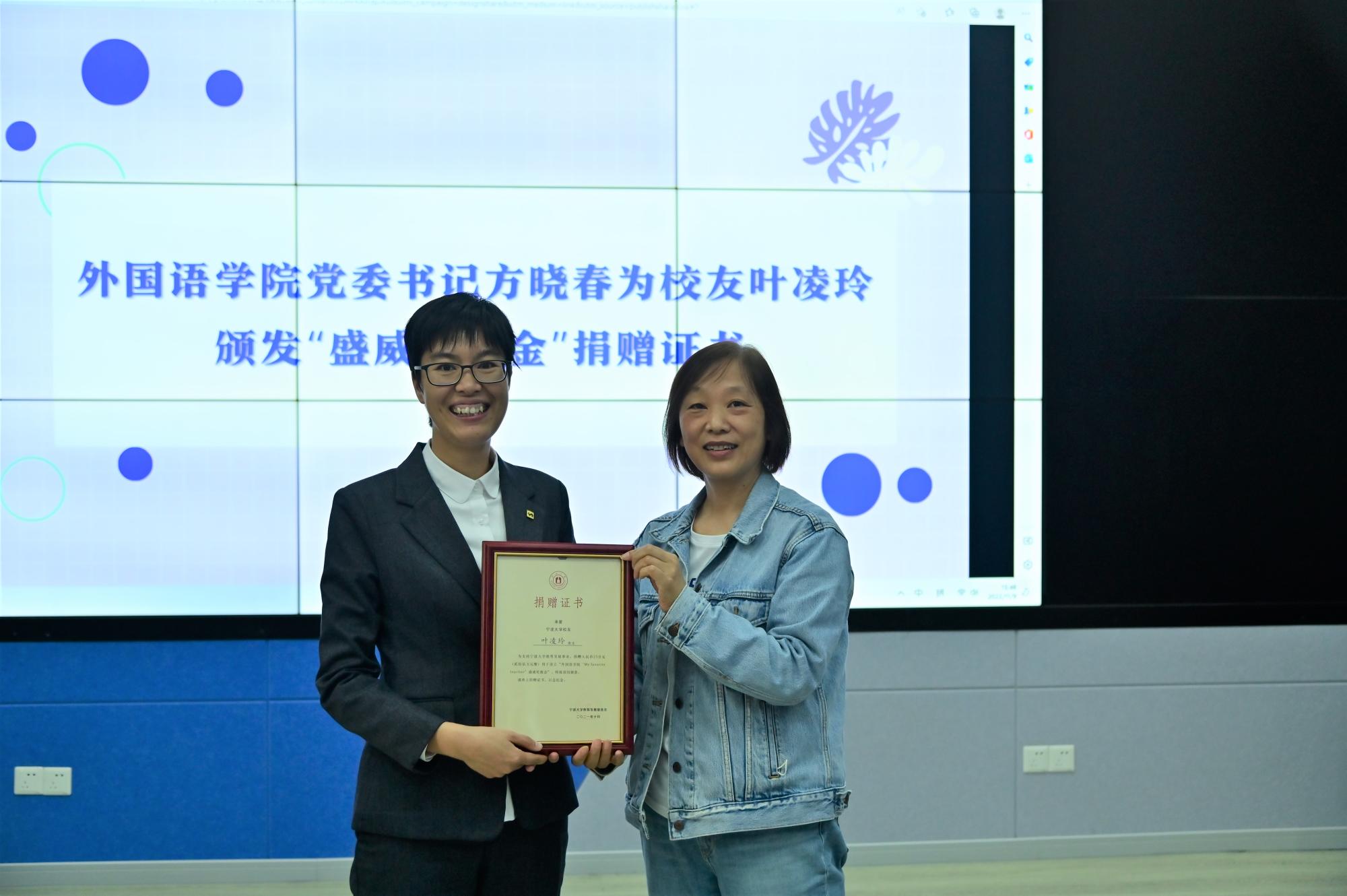 德语系2011届校友叶凌玲和学院党委负责人参加活动,并为获评做爱