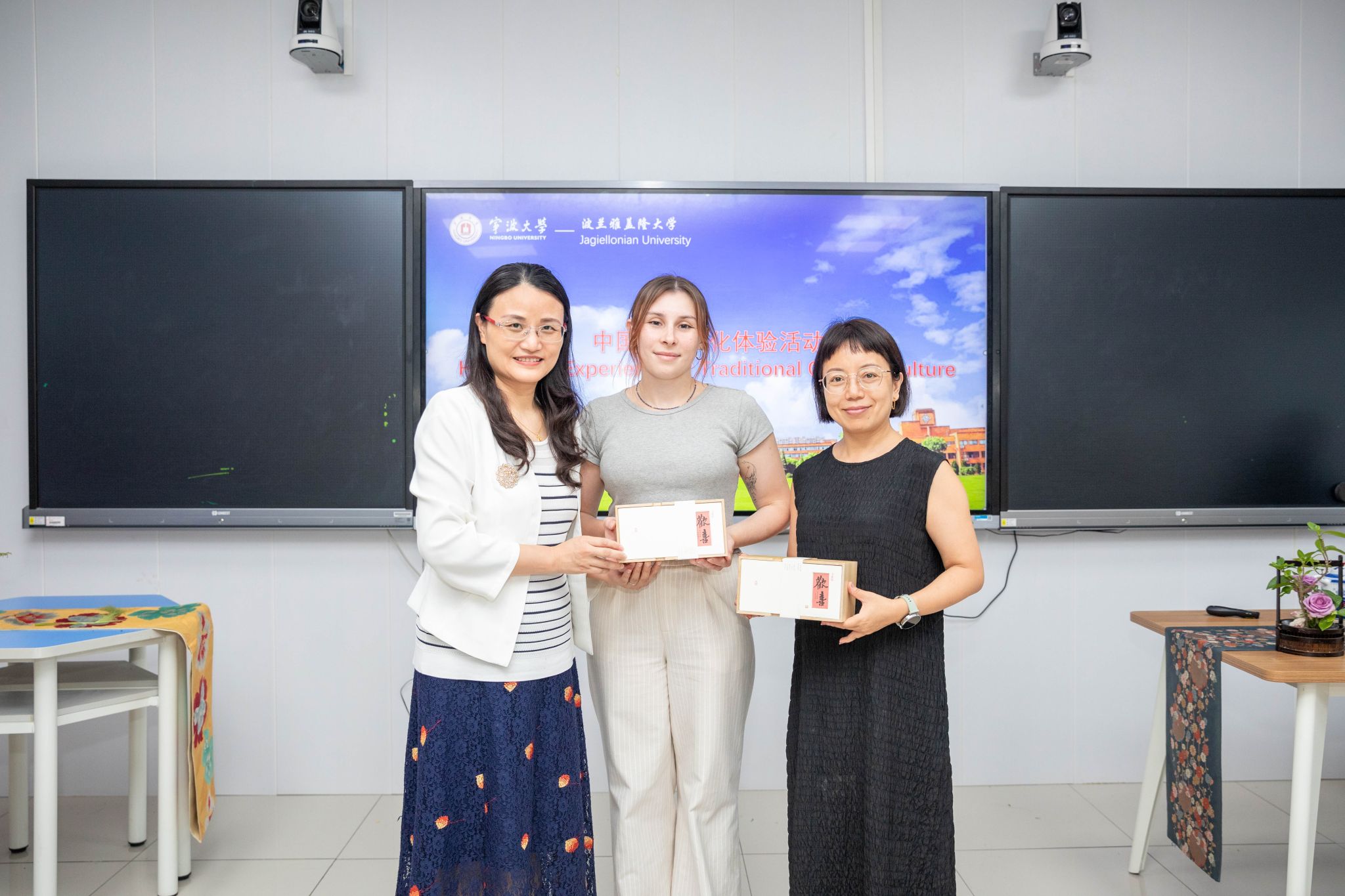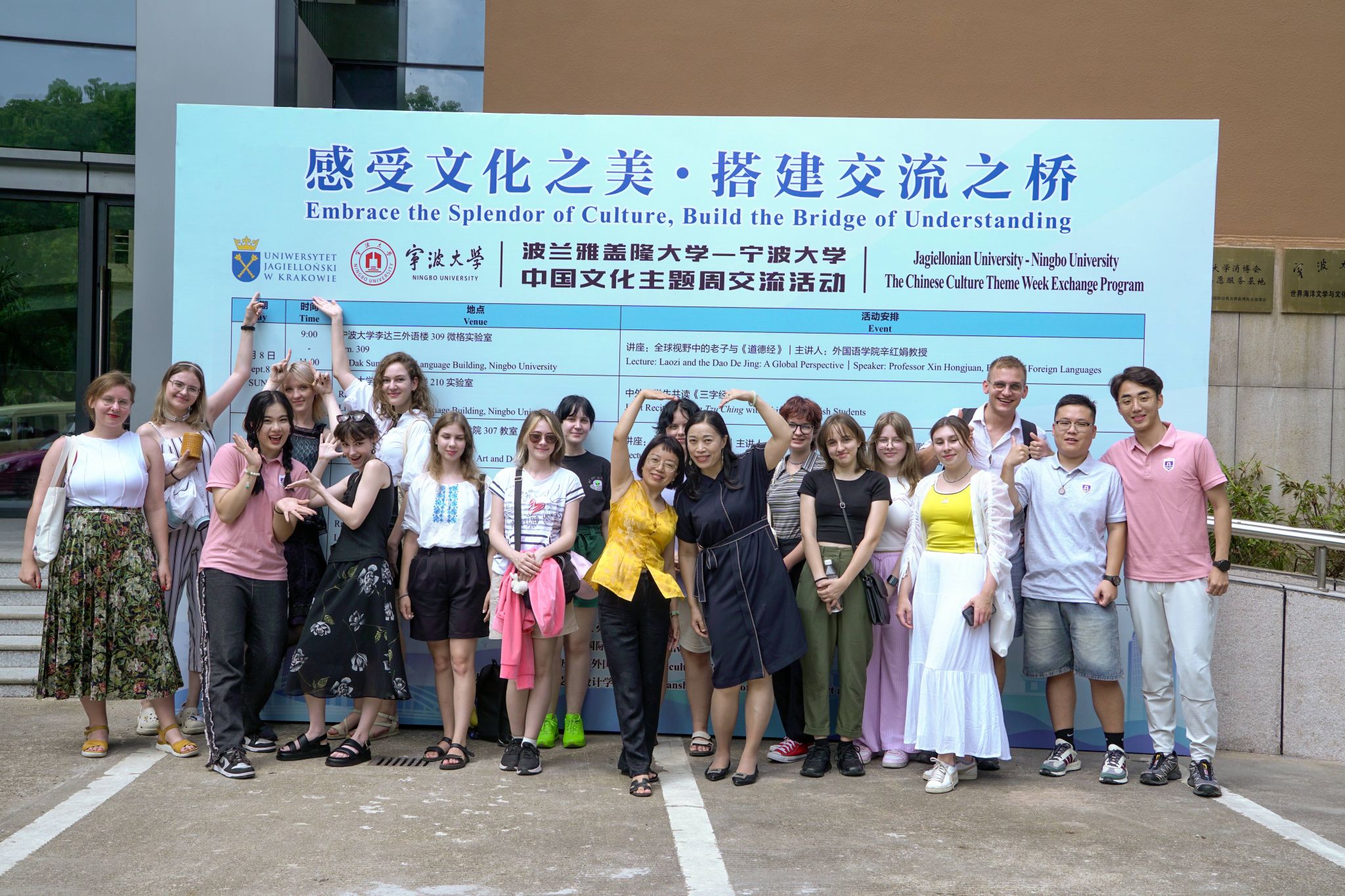 辛红娟教授主讲题为“全球视野中的老子与《道德经》”的讲座,还与中国学生共读了《三字经》,让大家感受了中国传统文化的独特魅力。期间,波兰学生还走进 “诗情湖西”(月湖金汇小镇)、屠呦呦旧居和南塘老街,体验了非遗传统文化项目——漆扇制作和宁波传统美食,学习了中国科学家精神,并与宁波城投的青年代表进行了面对面的交流。